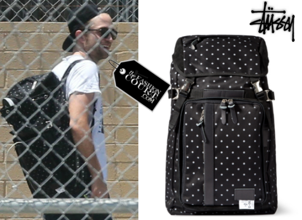"Rob's polka-dot backpack is by @Stussy Deluxe"